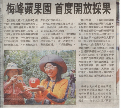 臺大山地實驗農場主題活動,現正熱映中! 歡迎電洽049-280-2499、3891或至官網參閱相關訊息:http://mf.ntu.edu.tw/