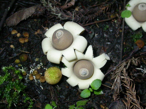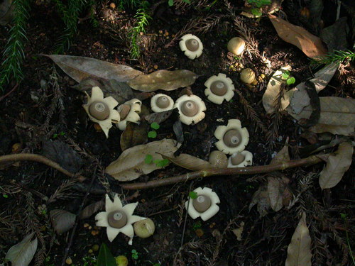 那麼,8月份上場的主要菇類究竟是何者呢?當您行經森林小徑,注意一下路旁滿覆枝葉的地面上,不小心就能發現這種有著狀似星星的奇特造型蕈類就藏身其間,猶如地面上的星體,因此有著「地星蕈」這樣的稱呼。