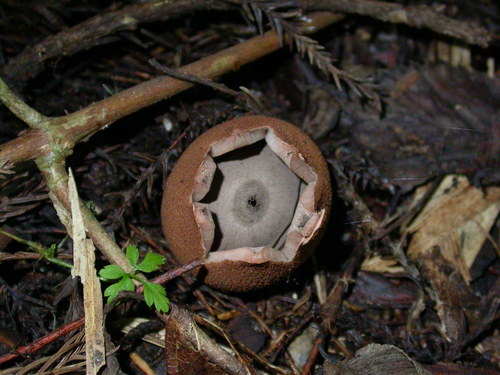 初生時猶如一顆被遺落在地面的鳥蛋,或是小小的奶油泡芙,但等到菇體成熟,表皮便向外開裂呈星狀,而中間的淡褐色球形物,便是所謂的孢子囊體,孢子成熟後,會自此囊體頂端開口散出。常常,那是下雨的時候,當雨水一滴、兩滴的自葉間滴落,湊巧擊中囊體頂端時,孢子就如火山噴發般的自囊口湧出。或者,成熟的菇體也將脫離與地面的聯繫,利用風、動物等外力的協助,而滾動著去探索這個世界,並將孢子帶往更廣大的地域。