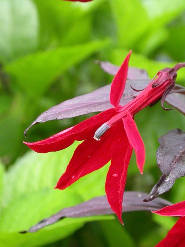 常春藤、蔓性天竺葵(常春藤葉天竺葵)、銀葉桉、斑葉扁柏、渡邊氏萬年青、耬斗菜、大花山梗菜(六倍利、紅花山梗菜,花紅葉綠)