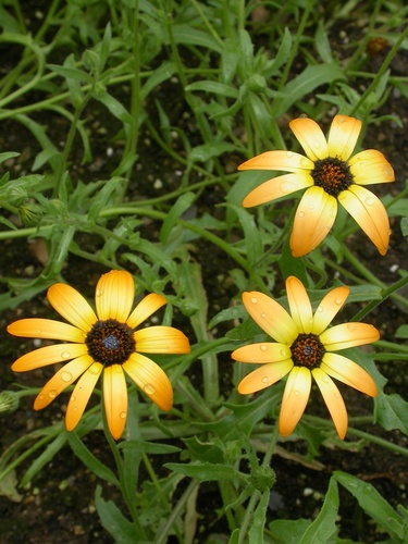 四季秋海棠、重瓣金魚草(白、黃)、葡萄風信子(串鈴花)、銀葉菊、大理花、小雛菊、香冠柏、翠柏、三色堇