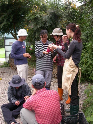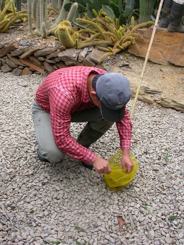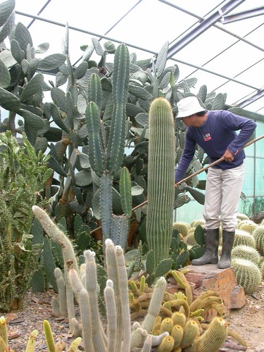 除了例行的澆水,一段時間之後,橫長的枝條,以及蔓生的雜草都必須定時來清理,解說員們分據一處,風風火火的工作著,有人被咬人貓痛咬,有人被仙人掌刺了好幾下,屬於高山植物的茶麃子也是有刺一族的,要拿剪刀剪它們的代價是,自己得先被扎個好幾下。等到休息時間到臨,則拿出預先準備的零食、點心補充體力。而一旁的刺梨(大綠扇仙人掌,澎湖製作仙人掌冰的金午扇仙人掌的親戚)此時已然結果,同事們討論著這東西究竟如何食用?不然解說時如何生動的對學員們解說呢?