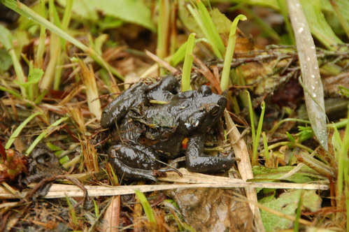 梅峰的蛙類種類不多,最常見的就兩種:「盤古蟾蜍」和「莫氏樹蛙」,但儘管種類不多,數量卻都很多。