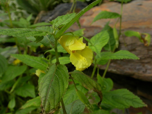 台灣原生的三種鳳仙花梅峰都有,這種喚作「黃花鳳仙花」