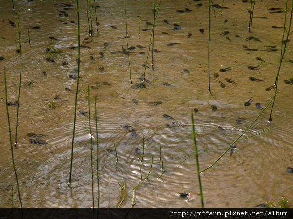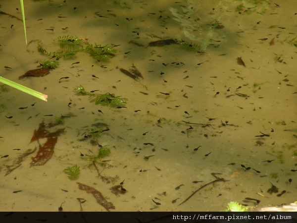 小小水池裡,有許多蝌蚪用游動在水面上盪出許多波紋。