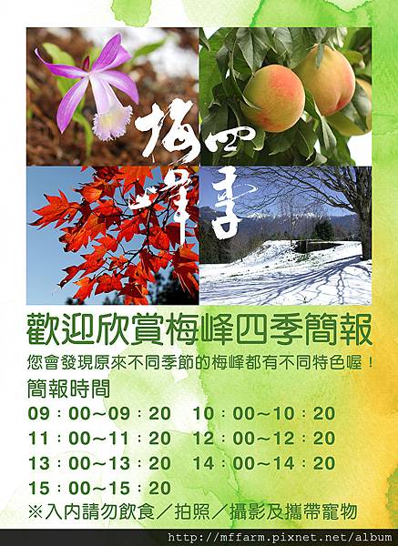 梅峰四季簡報,讓您對梅峰的自然生態體驗營有更多認識,誠摯的邀請您,蒞場聆聽哦!(最末一張照片中的簡報分享者 為阿雅小姐)