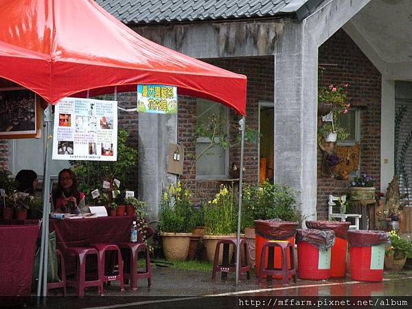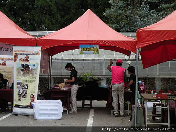 近中午忽然下起雨來,大夥又忙亂的拉起山野草特展區的塑膠布。
