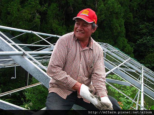 Wu-mau卻頗自得其樂,一下透過簡易溫室的塑膠布,