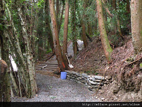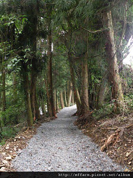 這條步道傍著一旁的小坡,成排的樹木成蔭的掩蔽著它,讓行走其上的人們,可以呼吸到很棒的空氣,並分享到樹木的陰影。而這條步道也是梅峰的小小改變之一,特別在此與大家分享。110901