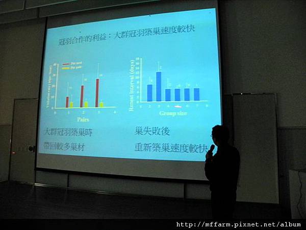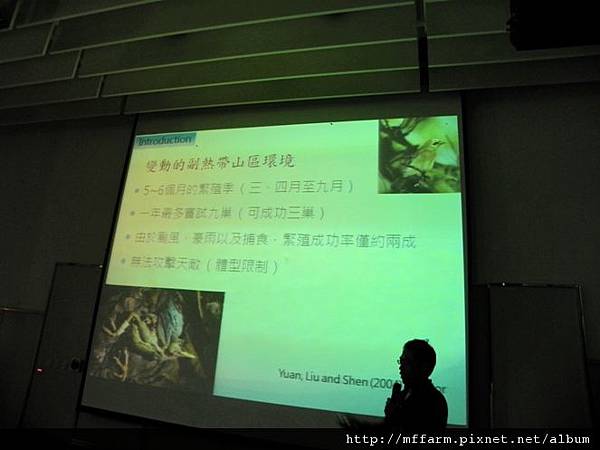 2011.09.28臺大山地實驗農場邀請了我們的老朋友沈聖峰博士為我們演講「冠羽畫眉的研究」主題,也讓同仁們與有興趣的聽眾們對冠羽畫眉有了更深入的了解。