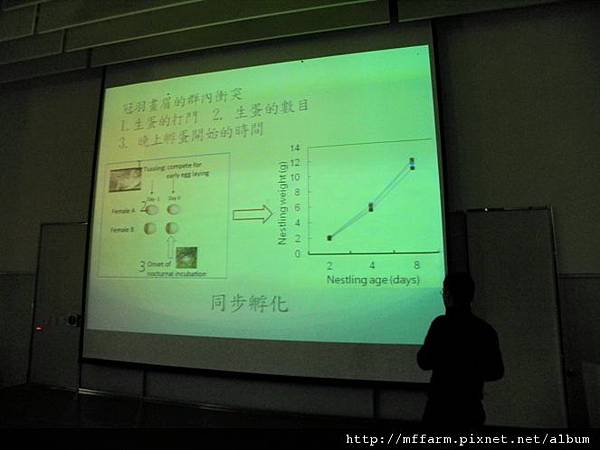 接下來,讓我們透過解說員的演講筆記來認識一些屬於牠們的價值觀和生活方式吧!牠們是採行一夫一妻,但共用一巢的「合作生殖」方式,最多時有觀察過四對夫妻一起築巢的。全世界約9℅的鳥類為合作生殖(900種),但是只有小於20種是「共用一巢」哦!而共繁殖群主要是由「非親戚」個體組成。