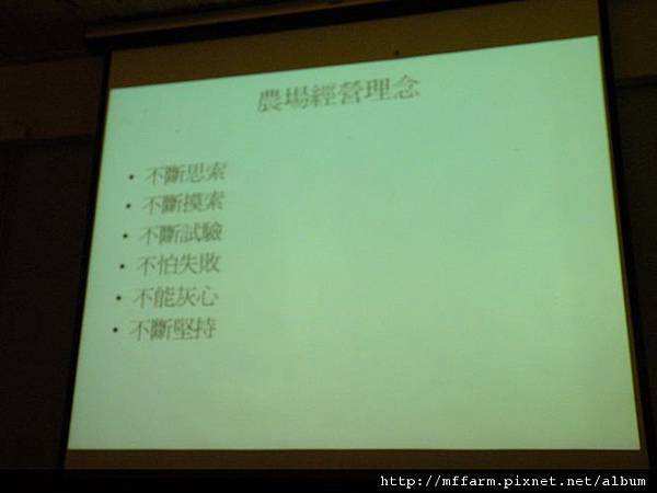 你怎麼對待土地,土地也會怎麼對待你。許多人抱著對自然的不了解投入所謂「夢想」,而以失敗收場。面臨一大瓶頸,也是一大轉機,但要努力去克服,堅持依個問題點,一定會有所突破。