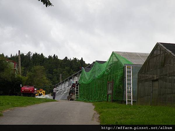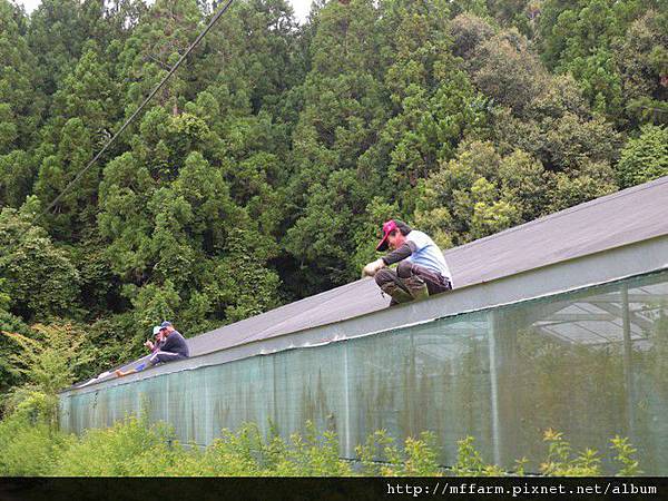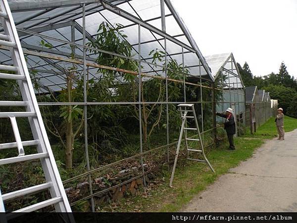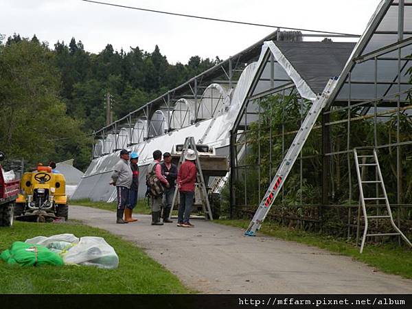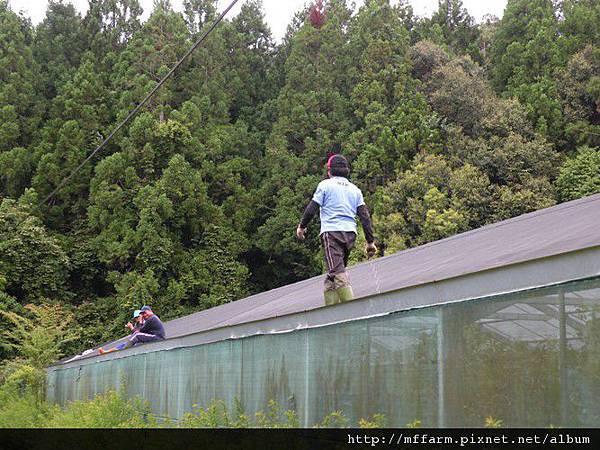 擁有許多溫室建築的梅峰農場,主要是利用溫室來隔離多餘的雨量,並進行調節氣溫、控制日照等功能,以利裡頭栽種的植物能生長得更順遂。這些看似堅固的溫室,在經歷一定的年月使用之後,外部的耗材,例如遮網、塑膠布等都需要更換,同仁們在行事曆裡做了安排,於是2011年的五月、六月間,就經常可以見到同事們在為生態園等一系列的展區換裝。
