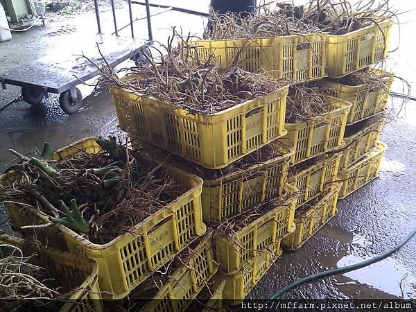 現場人員會將採收回來的根部洗淨,檢查外觀及分級。