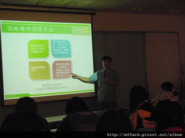 因應環境教育法於2011年06月05日開始正式施行,臺大山地實驗農場特地在11.10.31這天,邀請來師大環教所教授,也是環教法重要推動者之一的周儒老師來為農場的夥伴們說明環教法的內涵與認證方式。