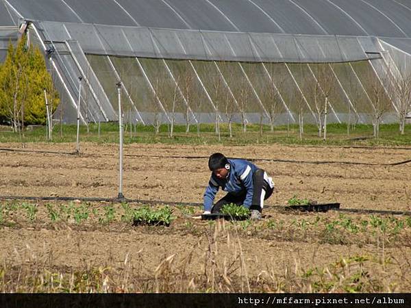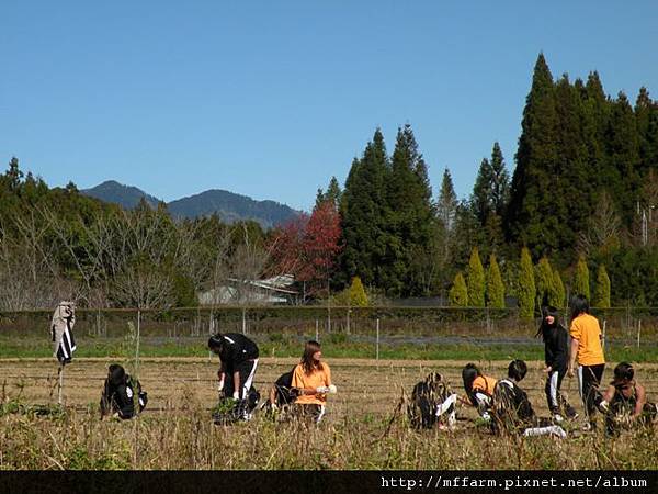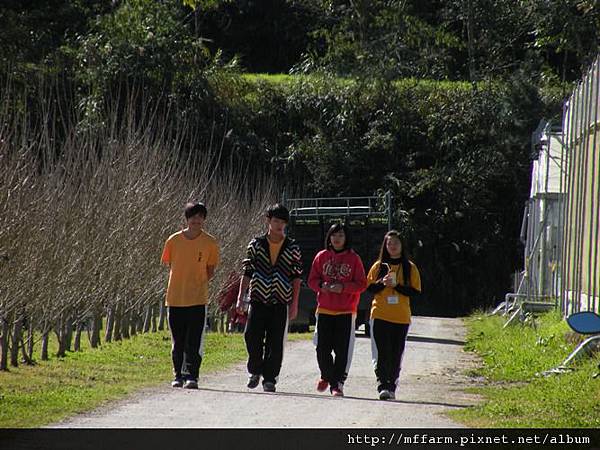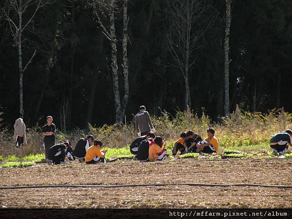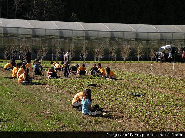 2012年第一批的仁愛高農學生實習,於01月10日進行。高農的孩子們一大早坐著交通車抵達後,就在農場工作人員春陽林鏈嘉主任、袁蜀龍大哥、趙月琴大姊、詹芳瑜小姐、張曉偉大哥等的帶領下,在場區內的一平台上頭協助種下金盞花。