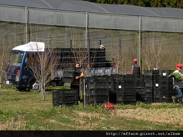 大家一起幫忙把卡車上的金盞花苗搬下!