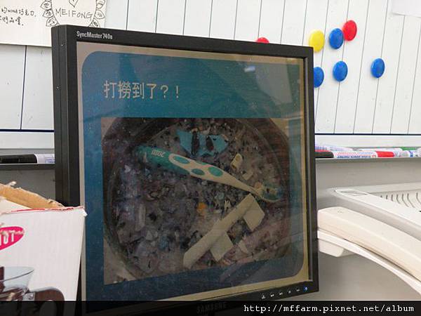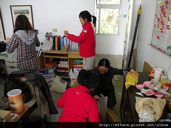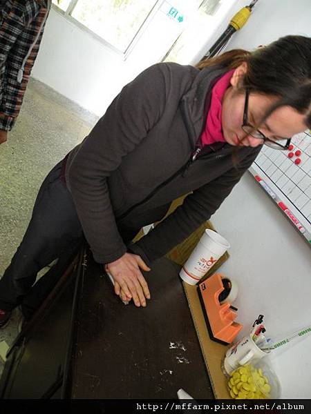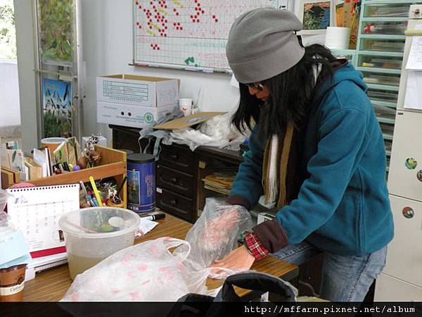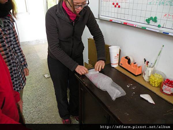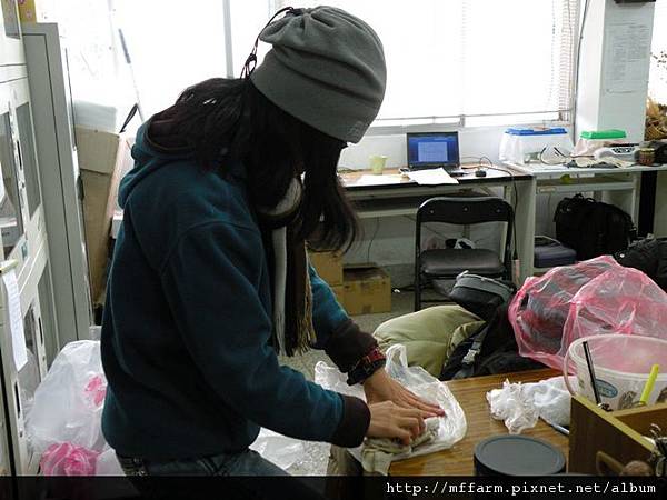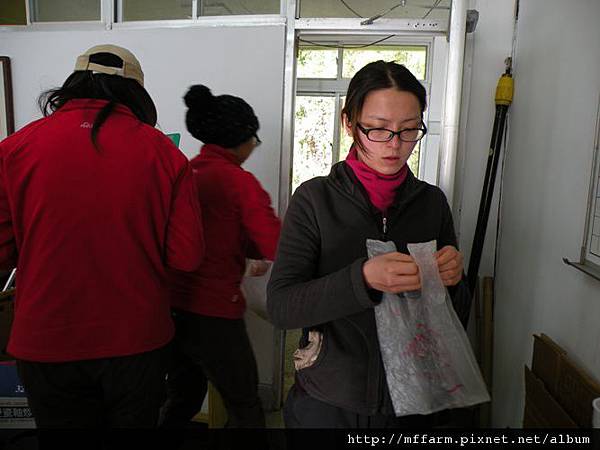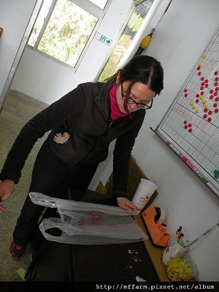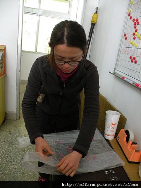 解說員芭樂也是負責擦拭塑膠袋的一員。