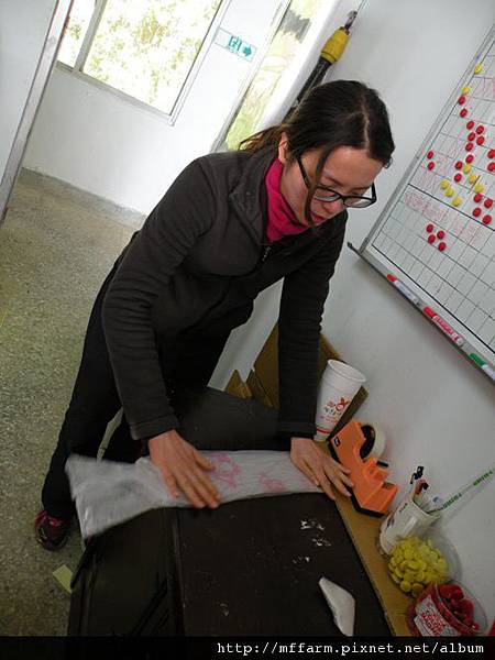 教學研究組研究助理 趙俐雅小姐示範折塑膠袋的過程。