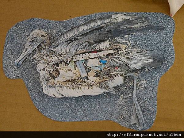 傳聞在太平洋上有36個臺灣範圍大的垃圾渦流,許多海洋生物肚子裡都是塑膠碎片,甚至像海龜從小被塑膠環纏勒,造成內臟變形;大陸長江的江豚吃了太多垃圾袋而死亡;許多魚與海鳥的內臟都被塑膠碎屑充滿……