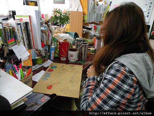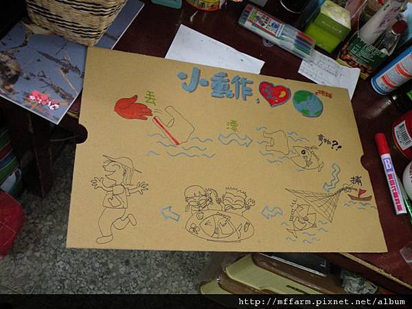 解說員 韻如則負責手繪塑膠袋旅程看板。
