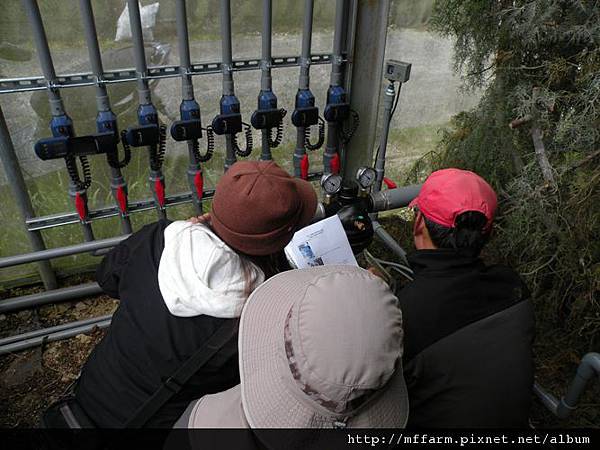 而澆多久土才澆得透?什麼時候澆比較適合?隔多久必需澆一次?......。哇!處處皆學問,而在梅峰的解說展示區內,光範圍廣袤,佔地一千六百平方公尺,涵括十一棟溫室的溫帶花卉區,全面澆灌也需要從早到晚一整天的時間。因此在2011年我們建置了自動噴水澆灌系統來幫忙我們減少在澆水上所花費的時間,而能有更多時間做補強、整理、設計、規劃等工作。