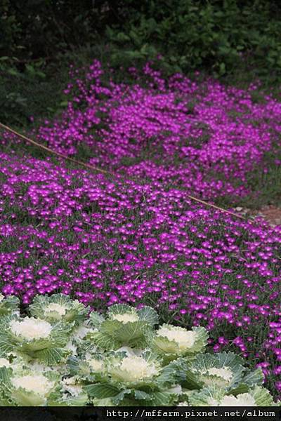粉紅色的松葉菊(冰晶花)與葉牡丹,大家記得拍照時也不要踩進去哦!