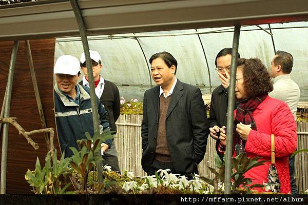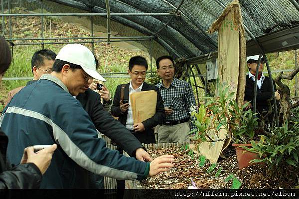 葉場長親自招待來自福建省外賓,為其解說一葉蘭展示區與故事館。
