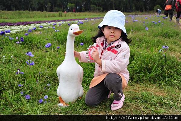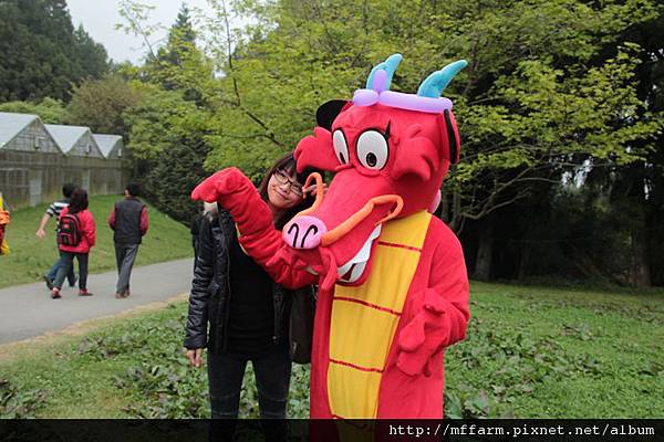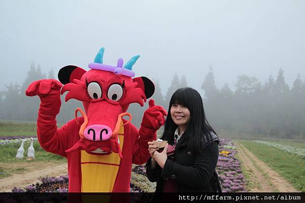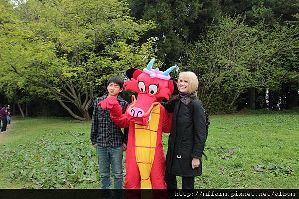 接著木須龍移動到花田區,這位小姐拍完照後,很可愛的說,好可怕!
