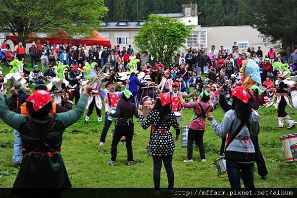 今天適逢週日,上、下午我們都在伴月坡上特別安排了由龍潭來的朋友們所表演的森巴鼓,與大家一起同樂!