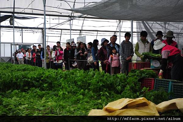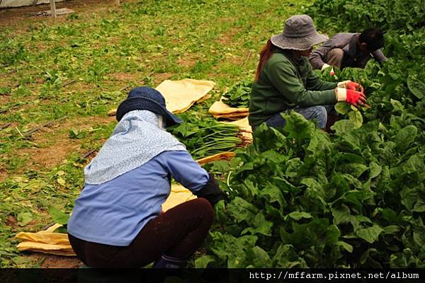 工作同仁辛勤的採摘著菠菜,讓喜愛的民眾選購!