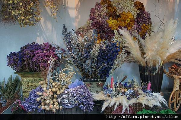 乾燥花室的乾燥花都是來自溫帶花卉區裡的現成花材。
