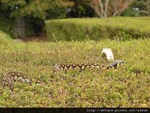 近中午時,迷宮區出現了在樹叢中進行日光浴的赤煉蛇,別擔心,只要你不傷害牠,牠可沒興趣咬你。而且這裡是牠家,還請你尊重牠生活其中的權利哦!