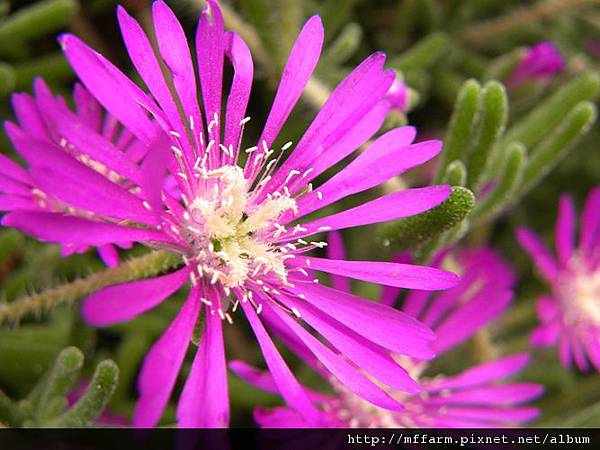 松葉菊在太陽下閃爍著鮮豔的粉紅。
