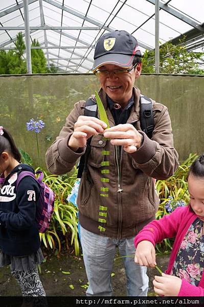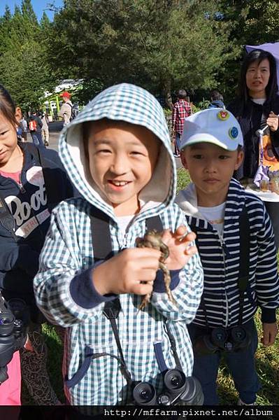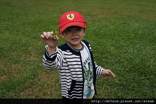 看!我抓到蚱蜢了,待會就會放走嘍!
