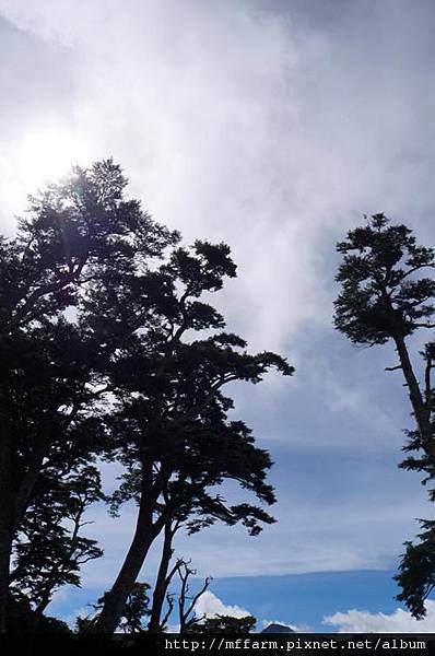 今天的天氣非常好呢!路旁的鐵杉姿態非常的好看!它們都是年紀很老的美麗生命了哦!
