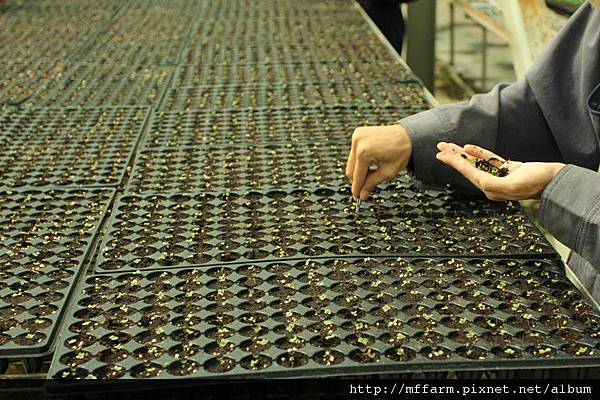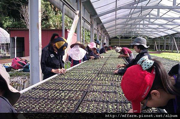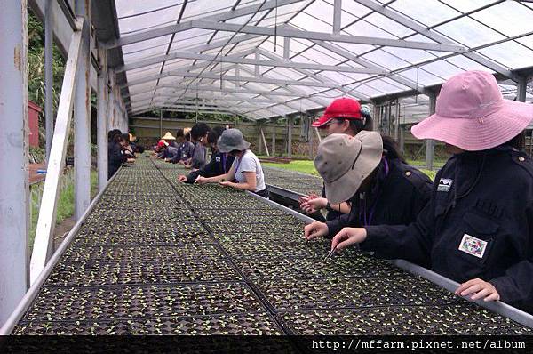 實習課程正式開始後,首先由春陽分場潘宏欽大哥為同學們介紹播種的方式及技巧。
