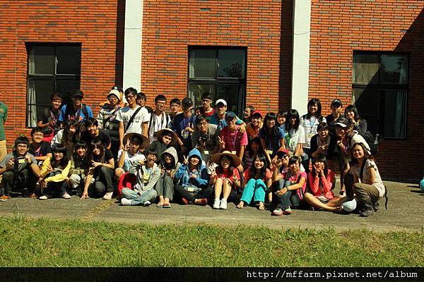 出發前,先在春陽分場的餐廳及學生宿舍前一 起拍張大合照吧!