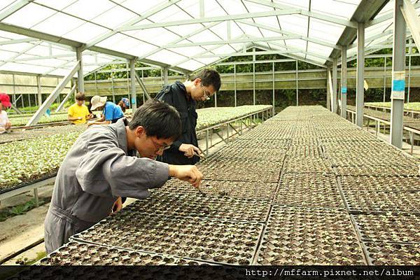 原來蔬菜是從這麼小的種子開始長大的呢!在最脆弱的幼苗期,需要仰賴人力協助將被播擠在同一個穴盤洞裡的小苗分開。