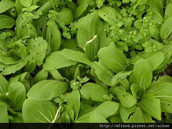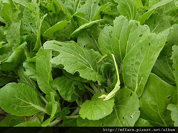 這是小白菜,許多蟲咬痕,應證了農場工作人員堅持不使用農藥的決心。