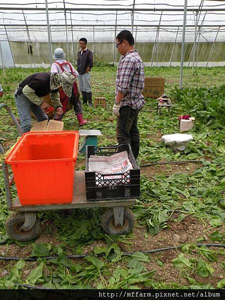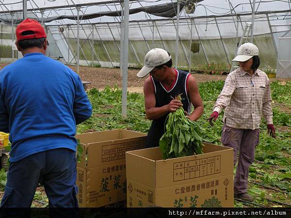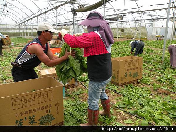 而臺大山地實驗農場在夏季有著涼爽適宜的溫度,經過多方試驗,因而選擇了菠菜作為夏季生產的主要產品之一。101年08月29日這天,農場許多同仁一起前往歌德溫室協助成熟菠菜的採收。要能體驗到拔菠菜的經驗可也是很難得的呢!若有興趣的朋友歡迎預約報名參加當日隊的「綠野仙蹤」http://mf.ntu.edu.tw/meifeng/packages.php活動,即有機會親身體會拔菠菜的樂趣,並能將菠菜帶回家。能夠在餐桌上吃到健康安全,又是親手採摘,營養豐富的菠菜,也是很幸福的一件事呢!