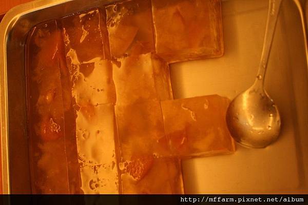 這則是臺大山地實驗農場今年生產的水蜜桃製作成的果凍,很可口呢!