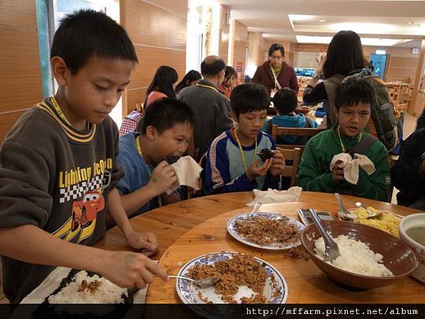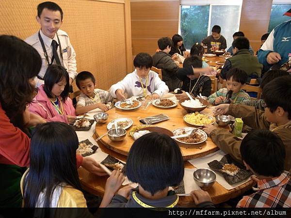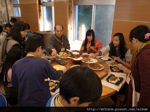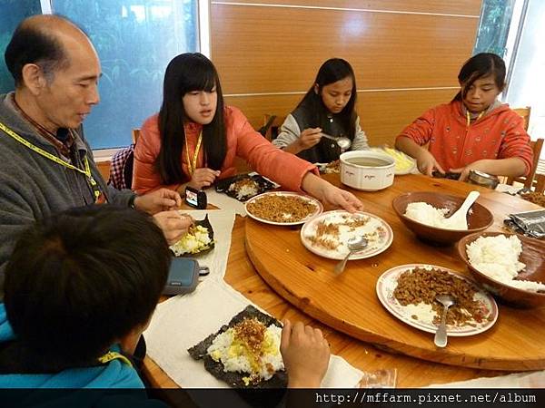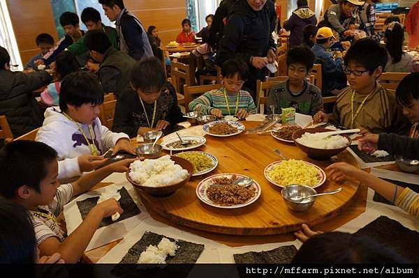 中午的午餐也很特別,孩子們要利用工作人員準備的材料自己包飯糰,想要吃多少飯或添加什麼材料都可以自己包,而且都要吃光光哦!那樣我們才有力氣來進行下午的大地遊戲活動呢!