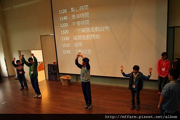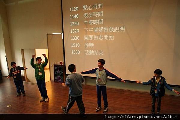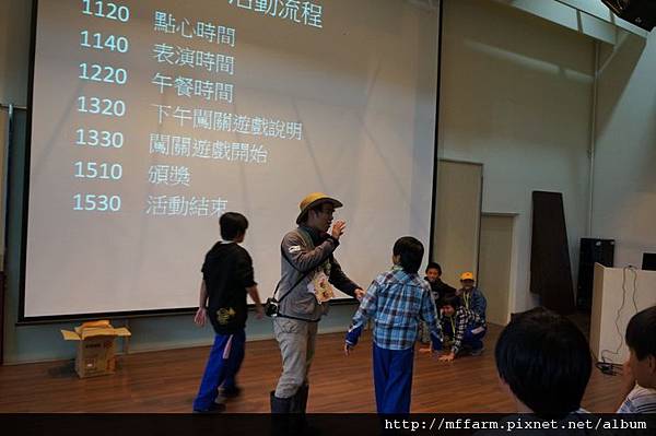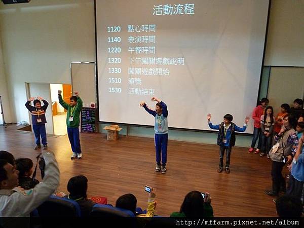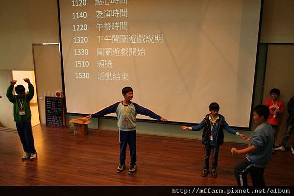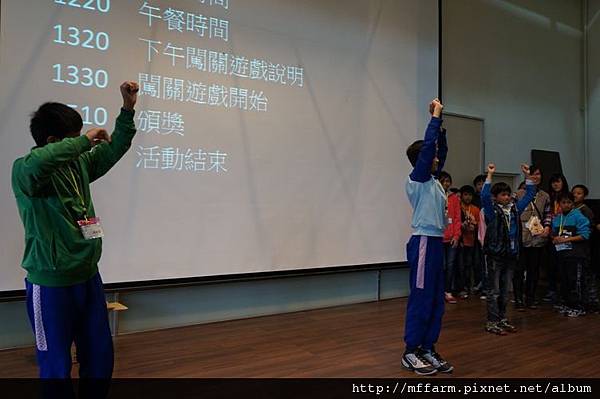 首先,孩子們先在報到處完成報到動作後,在國際會議廳裡由臺大山地實驗農場陳秘書致詞勉勵後,緊接著透過工作人員設計的小活動找到各自的組別。在小隊輔分別說明完注意事項及上午的任務後,各組小動物就要出發去散步啦!散步結束後,則要透過創意與默契,整組一起表演自己組的動物給其他組猜,所以要記得保密,不要輕易洩漏自己是什麼動物哦!