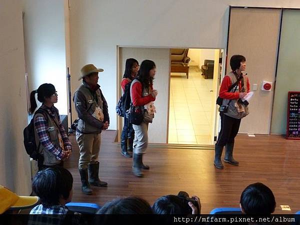 而這一梯次的值星官是解說員薛惠芳小姐,正在對孩子們宣佈今日的活動流程及注意事項,都了解後就可以準備出發進行棲地探險嘍!