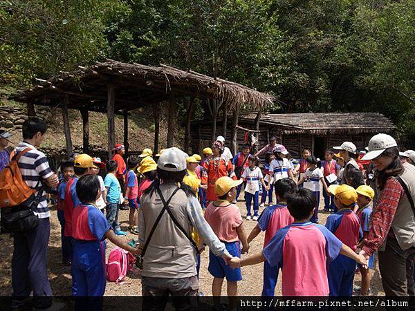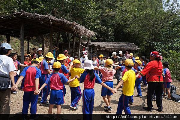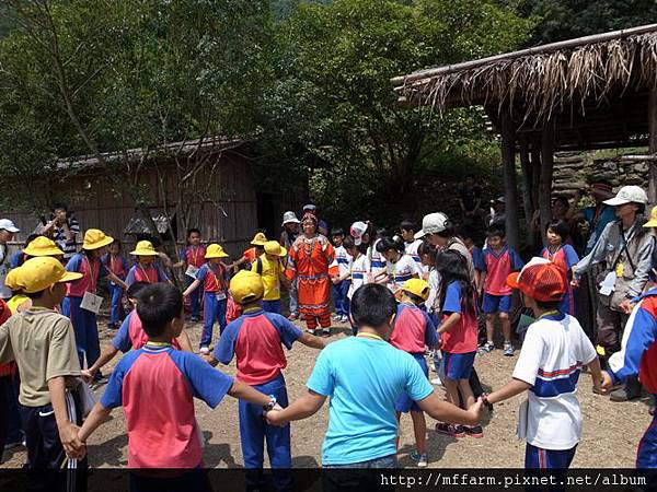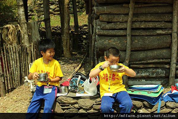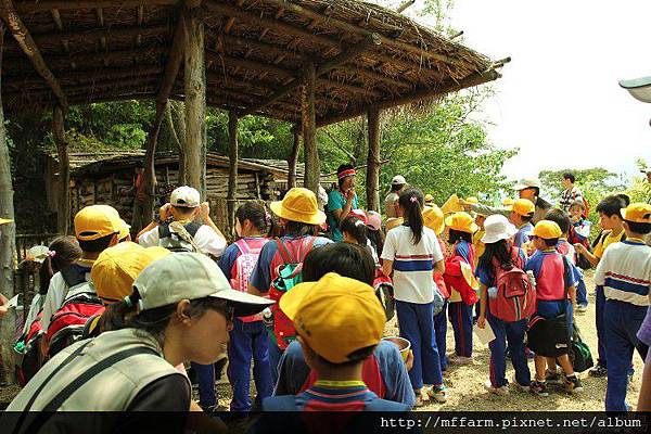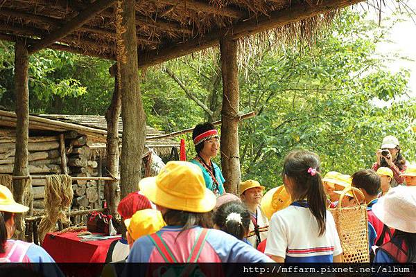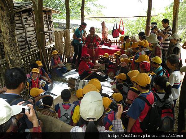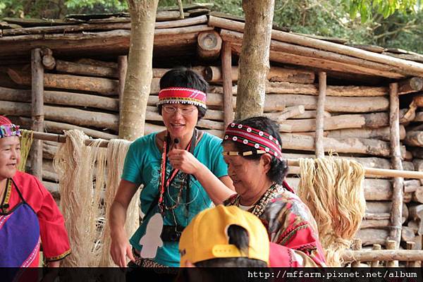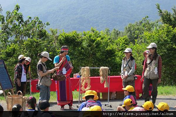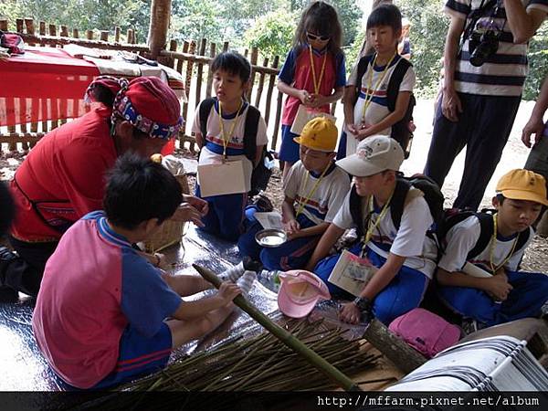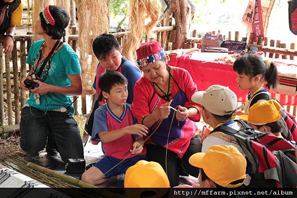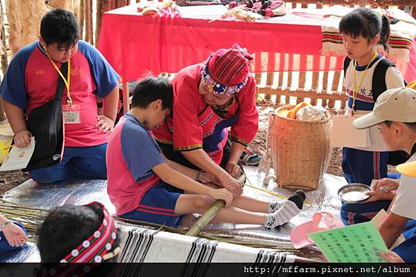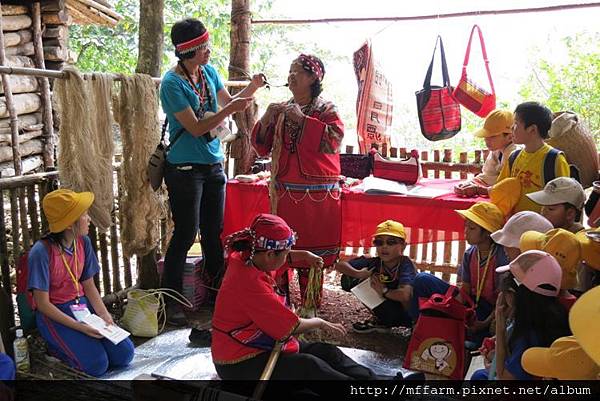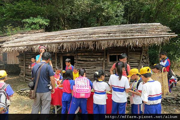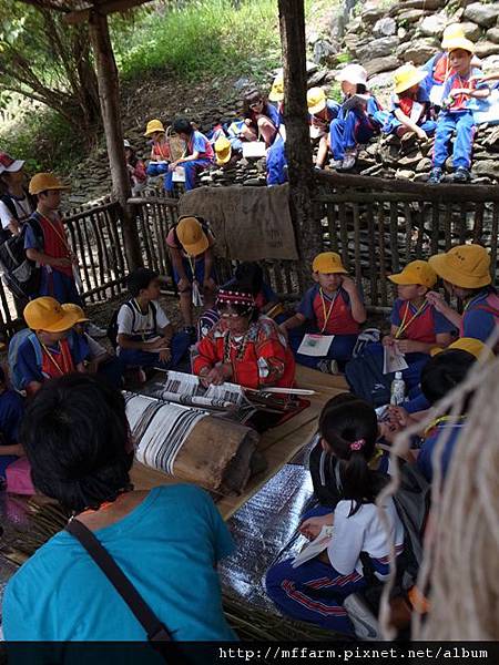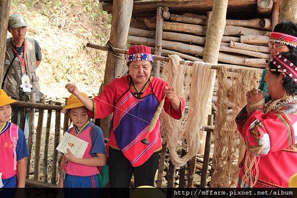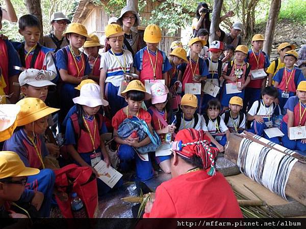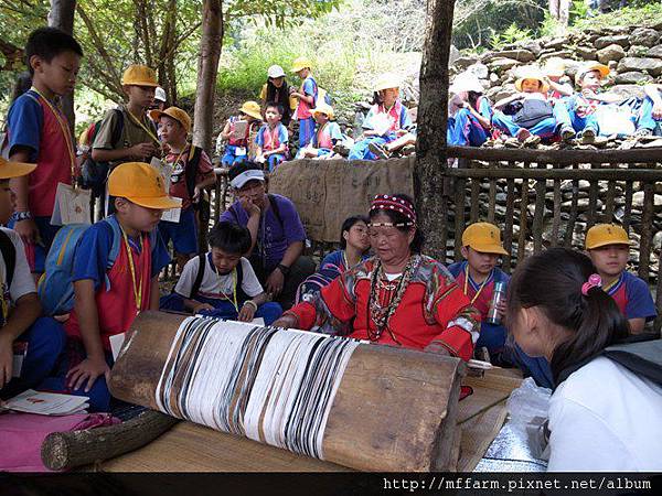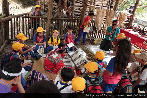 中途三隊的小朋友們都來到家屋區,除了認識傳統家屋,親眼見識用三角灶煮紅豆飯,吃點心,也體驗了賽德克族用苧麻取麻線,用織布機織布,及跳傳統舞蹈的過程。
