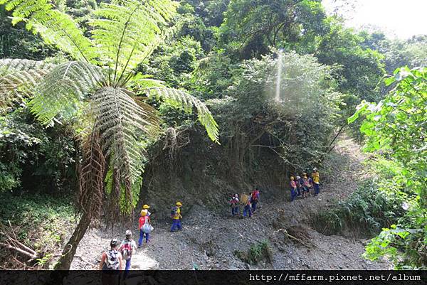 穿越溪谷,一旁有樹形的蕨類陪伴。