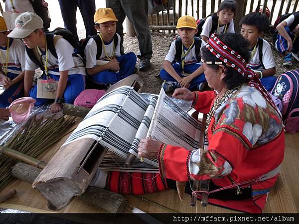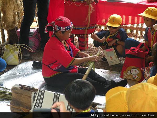 小朋友們吃完點心,集合一下,要來觀摩織布機的操作嘍!