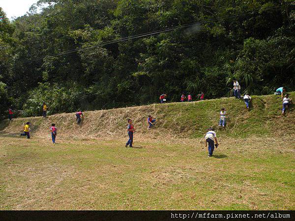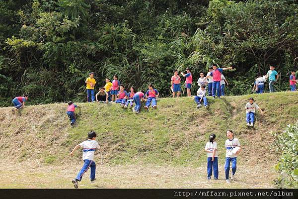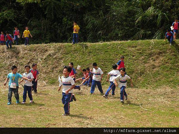 吃飽後到活動正式開始前的空檔,孩子們快樂的在春陽分場的宿舍旁玩起了草地溜滑梯的遊戲,在一點左右才前往大地遊戲關卡,進行好玩的闖關活動。分別有「故事拼圖」、「比手畫腳」與「拋繡球」的活動。