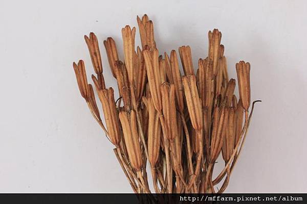 臺灣百合開完花後,會形成果莢,將快要完全打開的果莢採收下來。